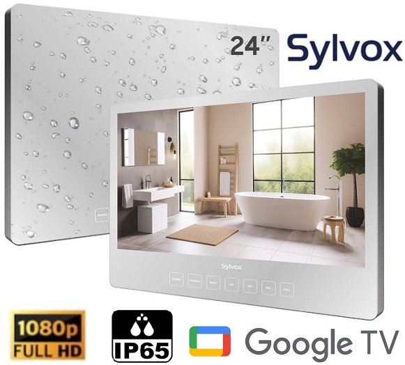 Sylvox 24" Smart Mirror Bathroom TV WITH Google System, IP65 Waterproof, Touch Button - 1080P - (mODEL:BT24A1KGGB)