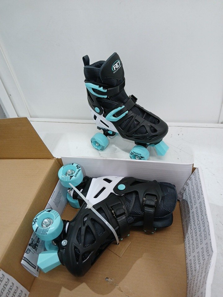 KID'S Roller Derby Adjustable Inline-Quad Combo Skates - SIZE 3-6- BLACK/TEAL