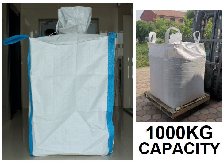 PP Woven FIBC Jumbo LINER Bag WITH 4 Straps, Flat Bottom, 1000KG CAPACITY - WHITE