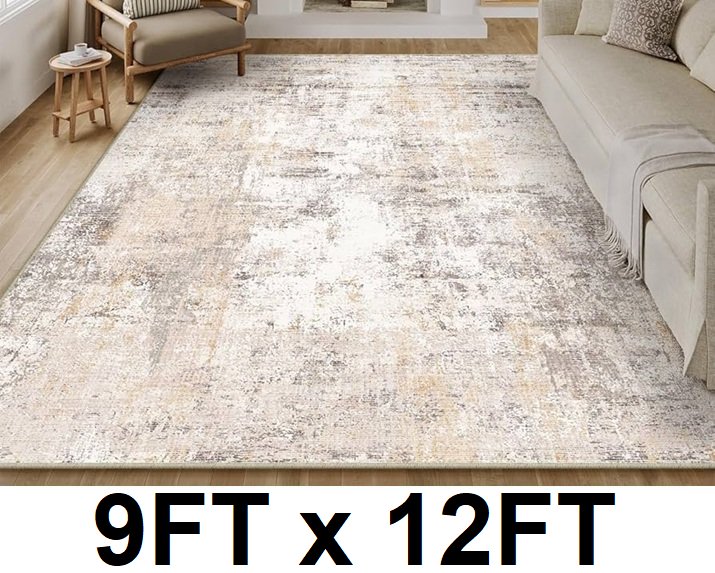 ABSTRACT Machine Washable AREA RUG FOR LIVING ROOM - 9FT X 12FT - BROWN/WHITE