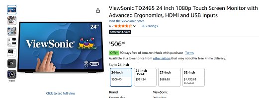 ViewSonic 1080p Touch Screen Monitor with Advanced Ergonomics - 60hz - 24" - black (model:td2465)
