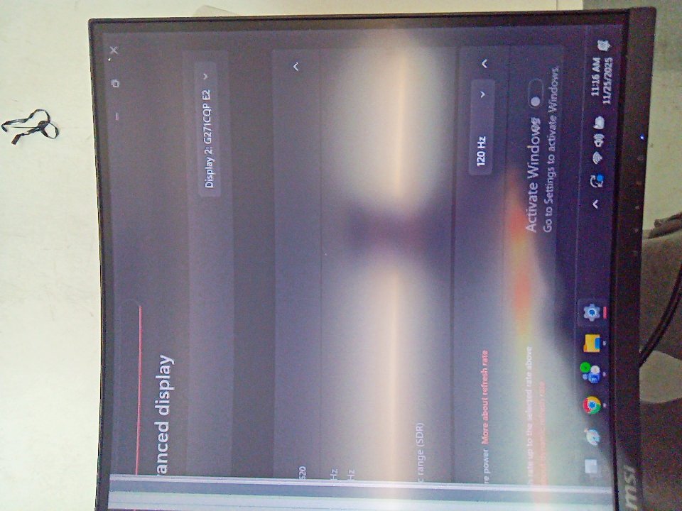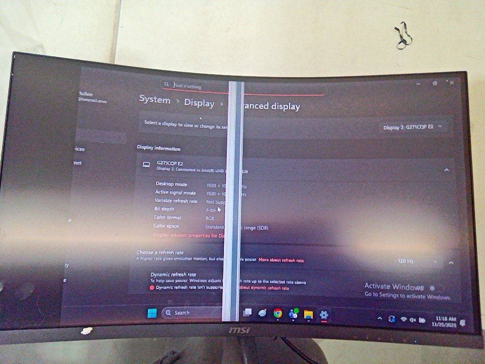 There are light markings/fingerprints on the monitor and the back is missing the sticker. The screen has a thick black/white vertical bar running through the middle and a section on the left side is blacked out. Tested for power and display up to 120hz. (SEE PHOTOS)
