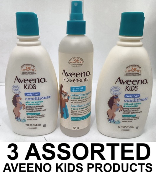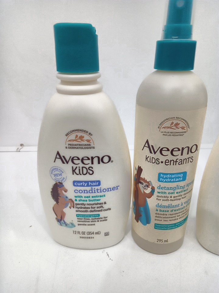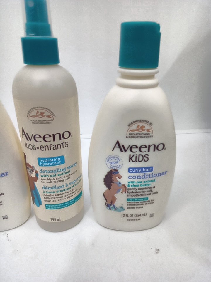 3 ASSORTED aveeno kids products - curly hair conditioner/ detangling spray