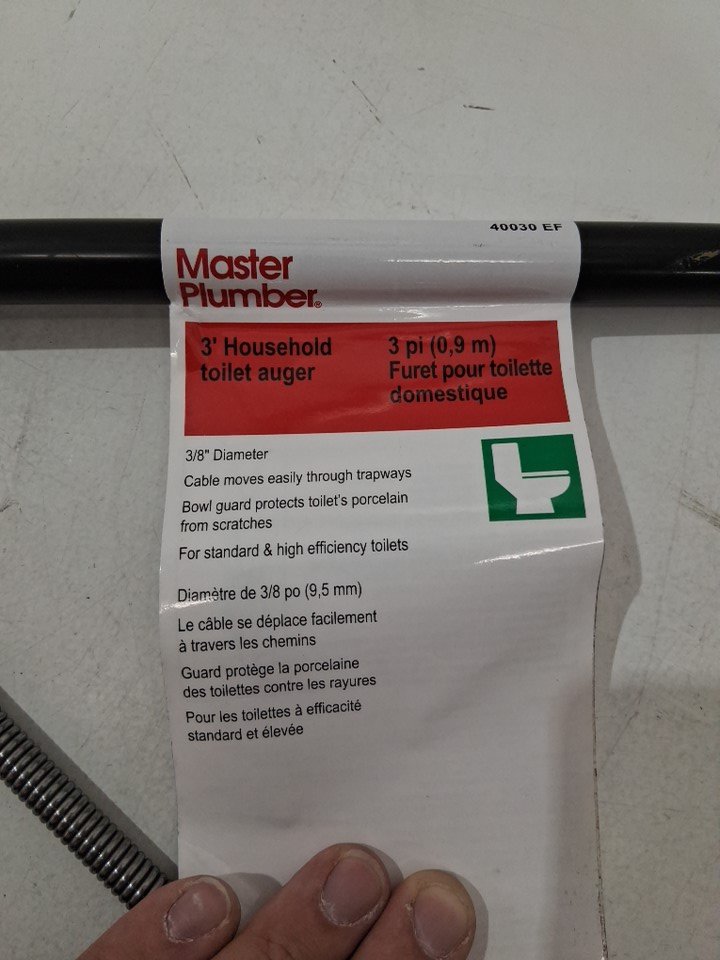 Master Plumber Professional Toilet Auger with Non-Slip Grip Handle - 3ft - black (model: 40030 EF)