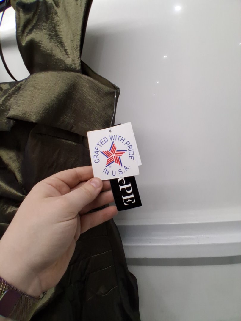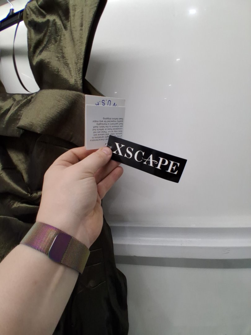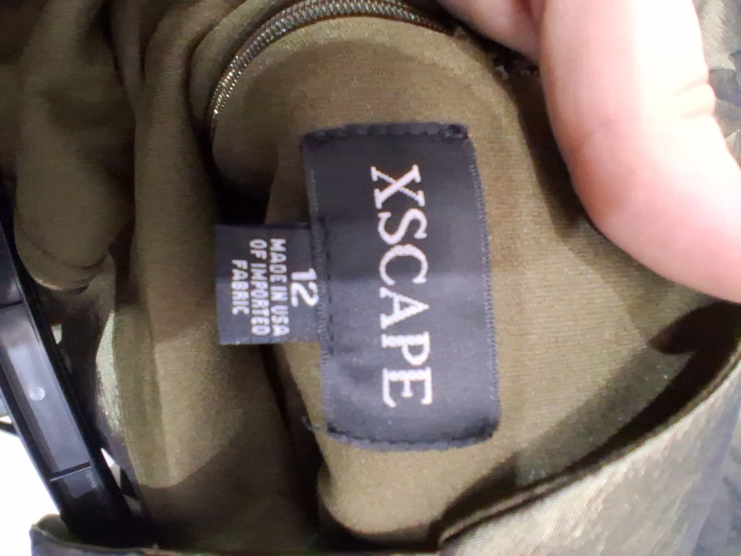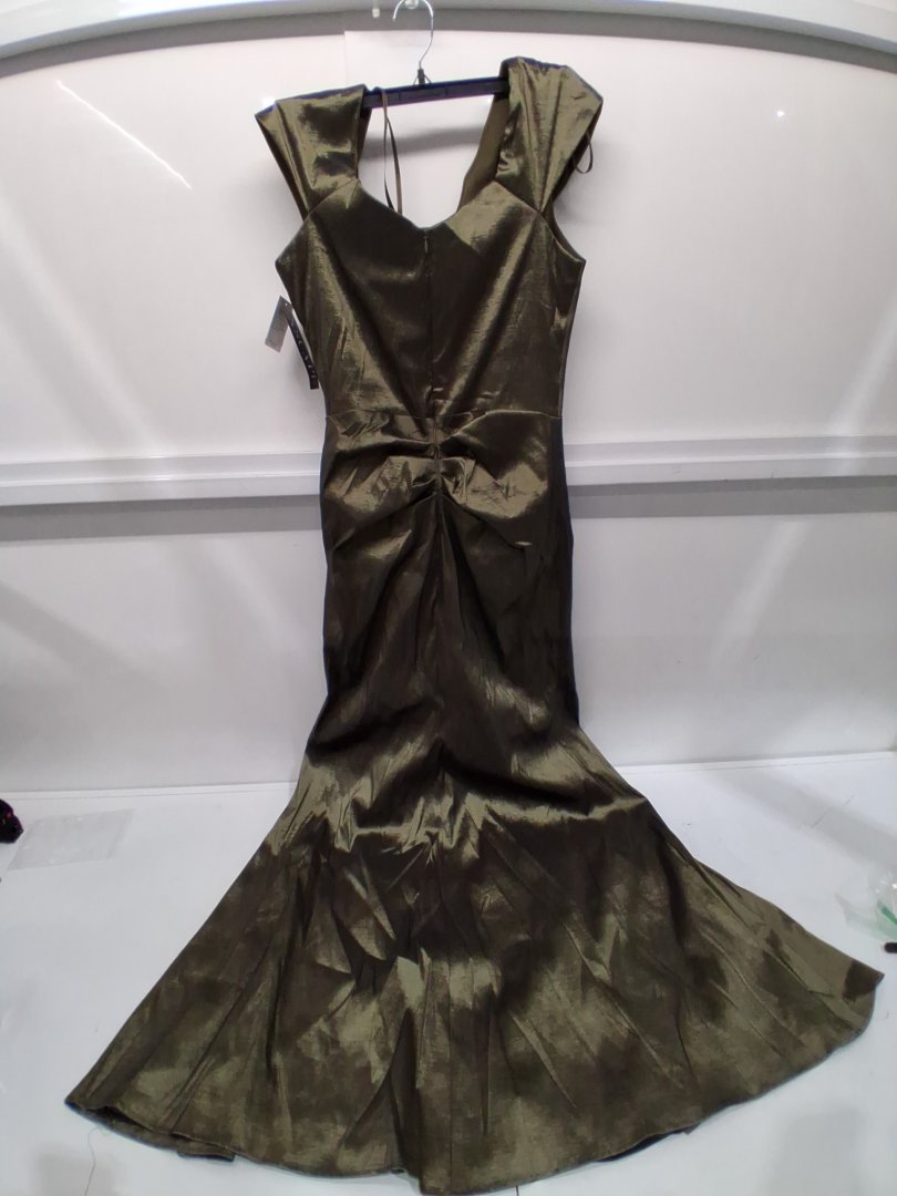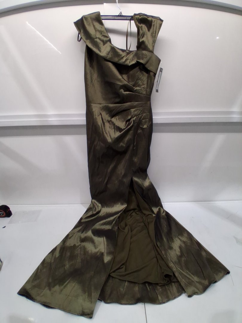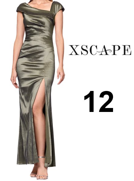 WOMENS XSCAPE "Paulina" Taffeta Short Sleeve Asymmetric Neckline Floor Length Dress - SIZE 12 - OLIVE GREEN (STYLE: 7023X/7023XA)