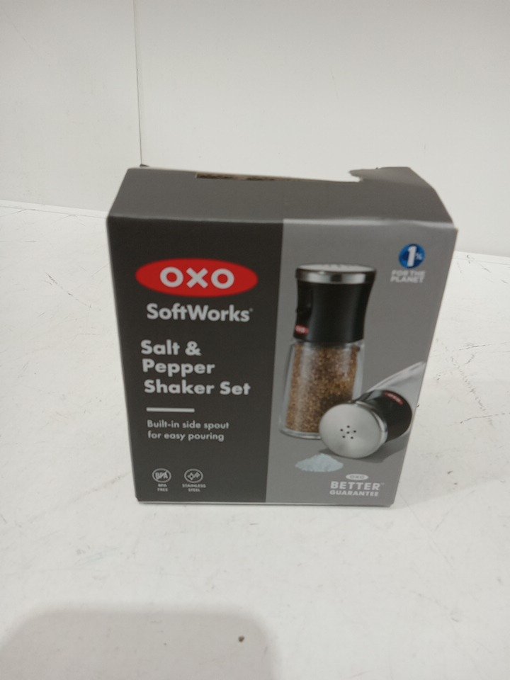 2PK OXO Softworks Salt & Pepper Shaker SET - CLEAR/BLACK