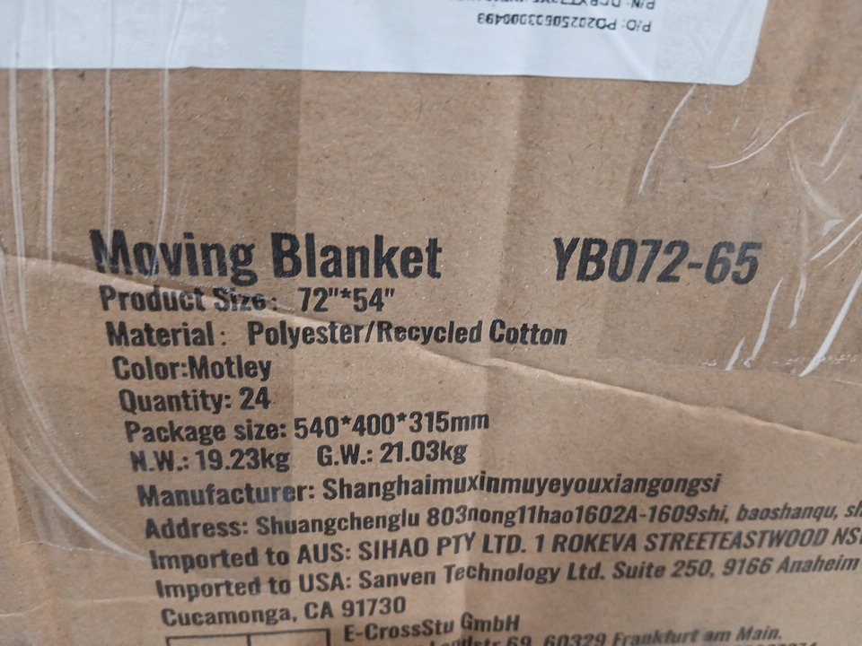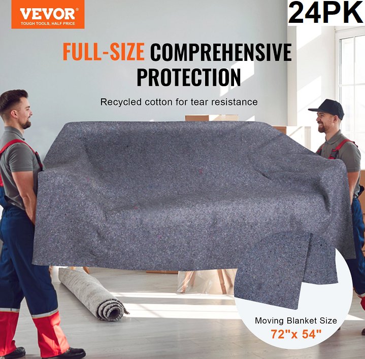 24PK VEVOR HEAVY DUTY POLYESTER Moving Blankets, 72" x 54" - GREY (MODEL: YB072-65)