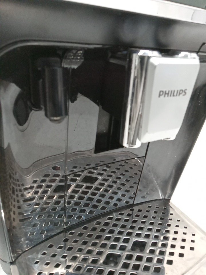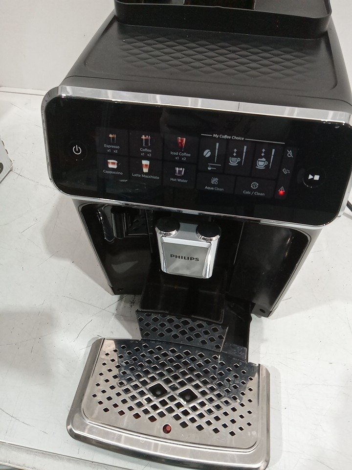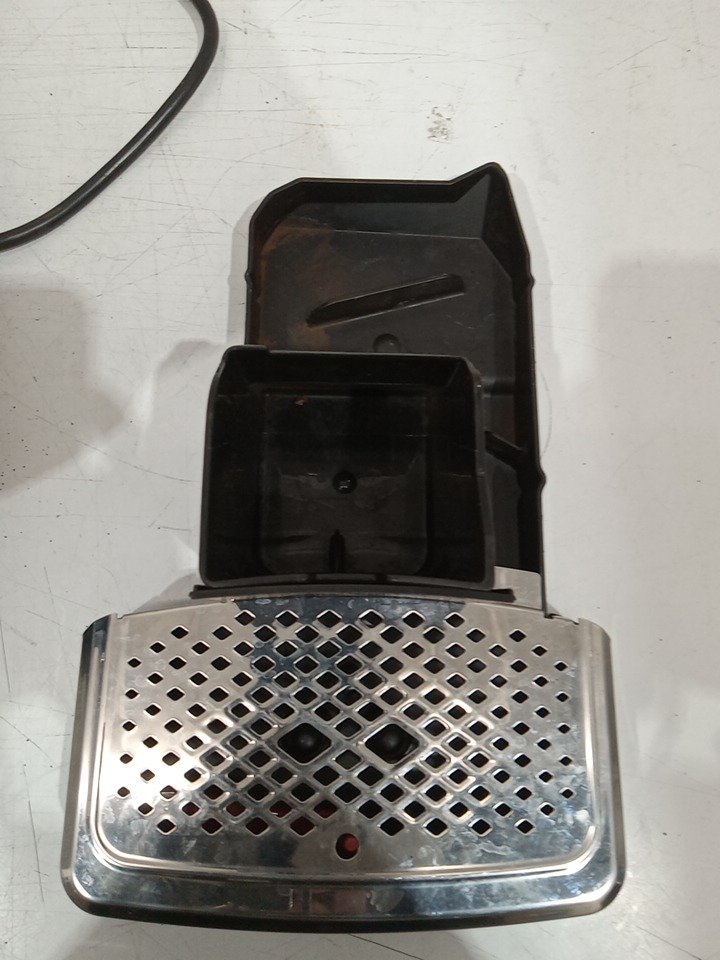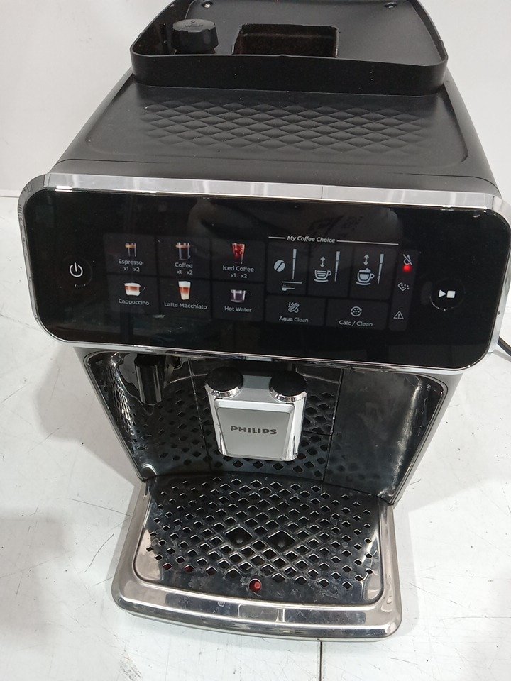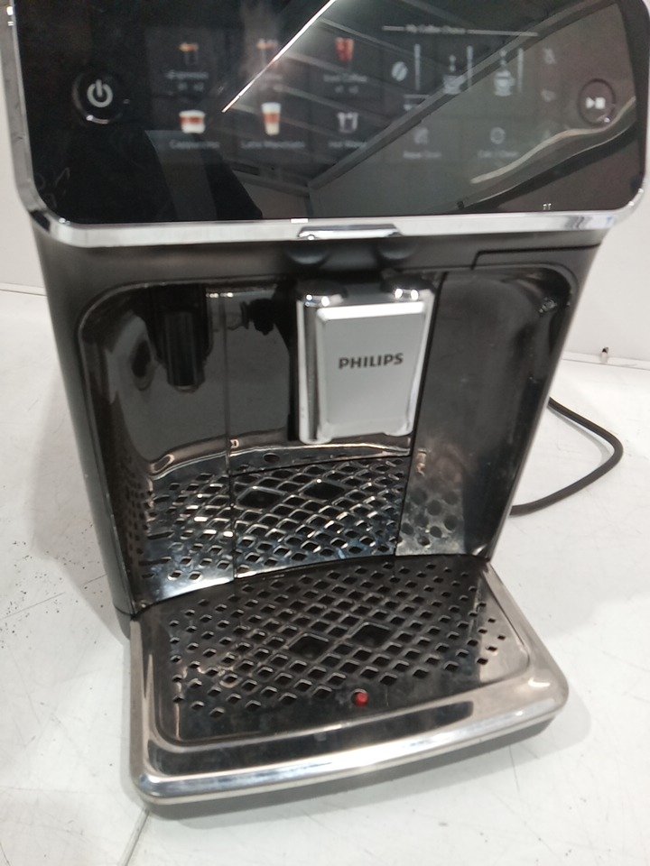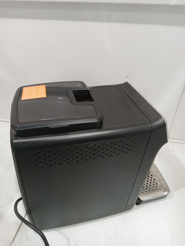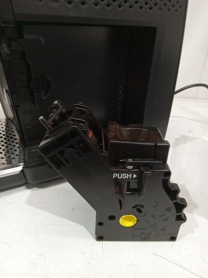 Please note that the all of the cleaning accessories, manual, LatteGo milk frother, top small grinder lid are missing from the original packaging. The top left side of the grinder’s plastic cover is missing from previous use, and we are not sure if it will affect the product’s functionality. The left side panel also has dents along the top edge due to prior use. Tested for basic power only. (Please see photos)