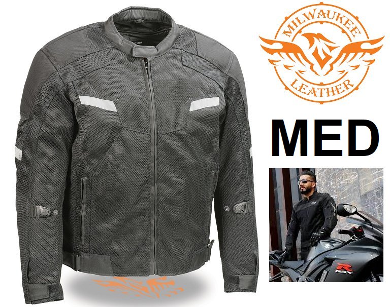 MEN'S MILWAUKEE LEATHER ARMOURED MESH RACING JACKET WITH GUN POCKET, ZIP-OUT LINER & REFLECTIVE STRIPS - MEDIUM - BLACK (STYLE: MPM1792)