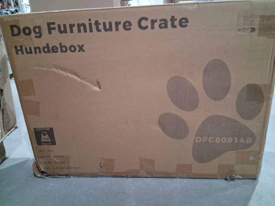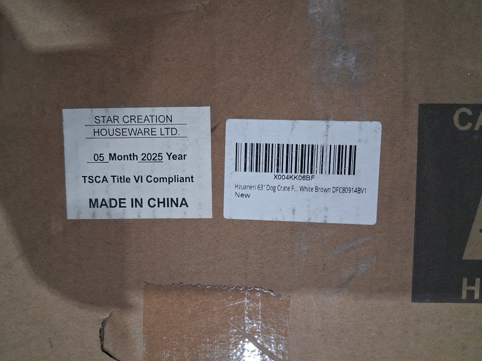 Hzuaneri heavy duty Dog Crate Furniture for 2 Dogs with Divider and cushion -XL, 63" - white/brown (model: DFC80914BV1)