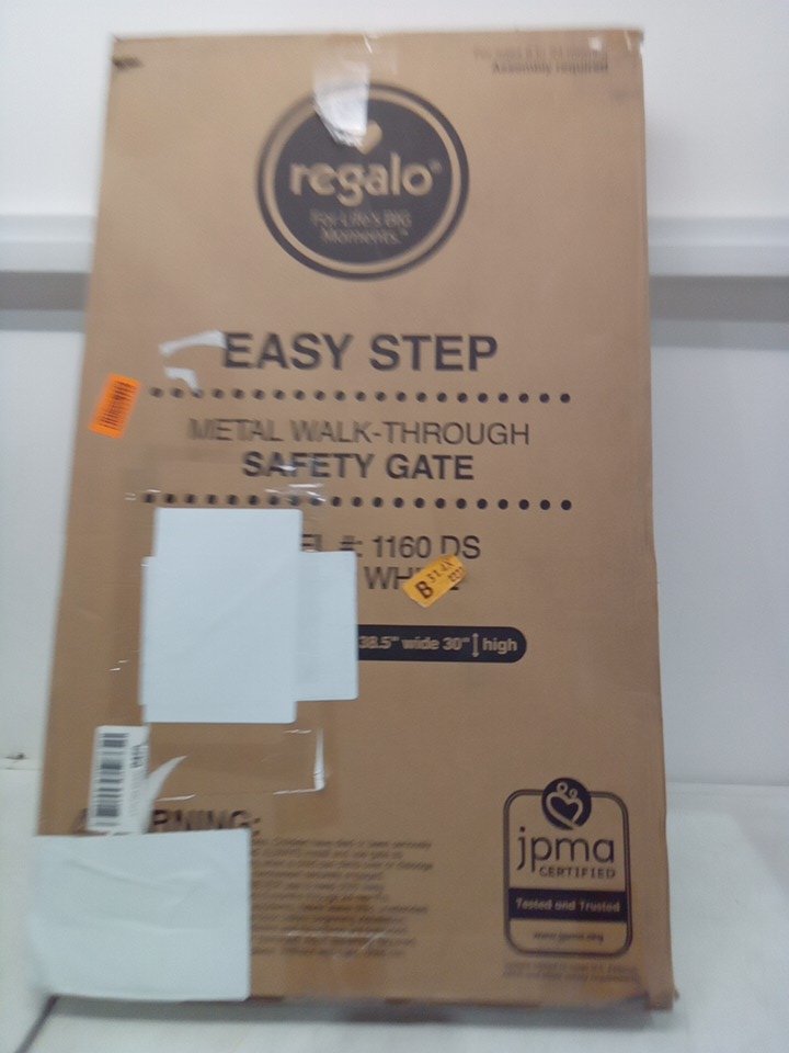 REGALO EASY-STEP METAL WALK-THROUGH SAFETY GATE - 30" x 29'' to 38.5'' - WHITE (MODEL: 1160DS)