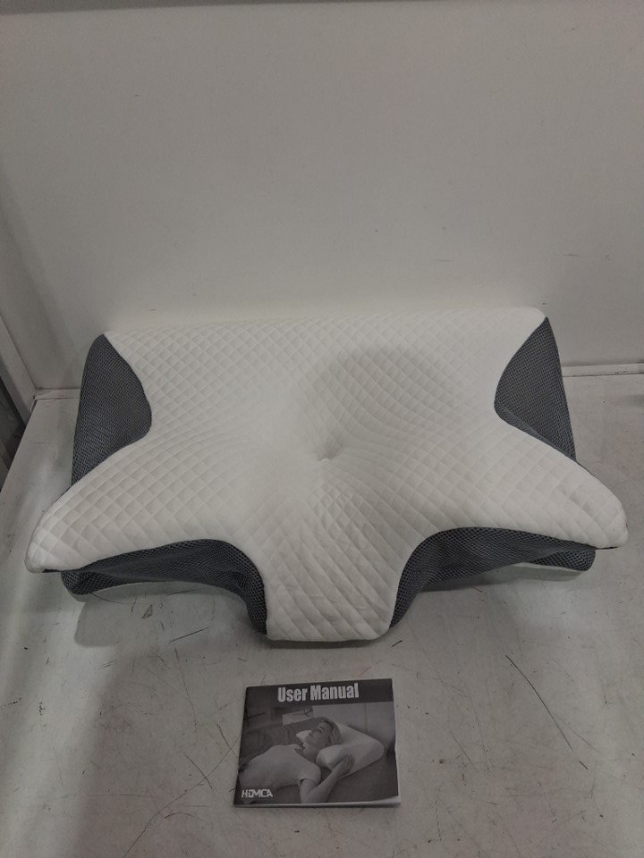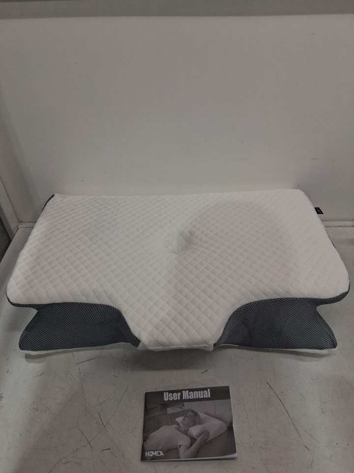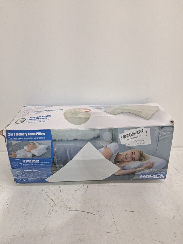 HOMCA 2-IN-1 Ergonomic Memory Foam Pillow for Side Back Stomach Sleepers - 15.7"x 23.6" - White/Grey - (model: PL02)