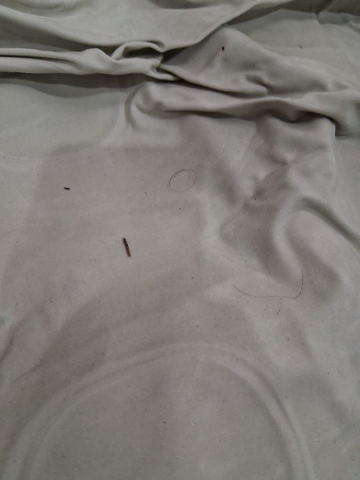 Hairs on topside of mattress.