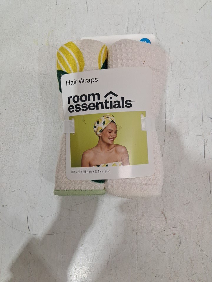 2PK ROOM Essentials POLYSETER hair wrap towels - OSFM - WHITE WITH LEMONS