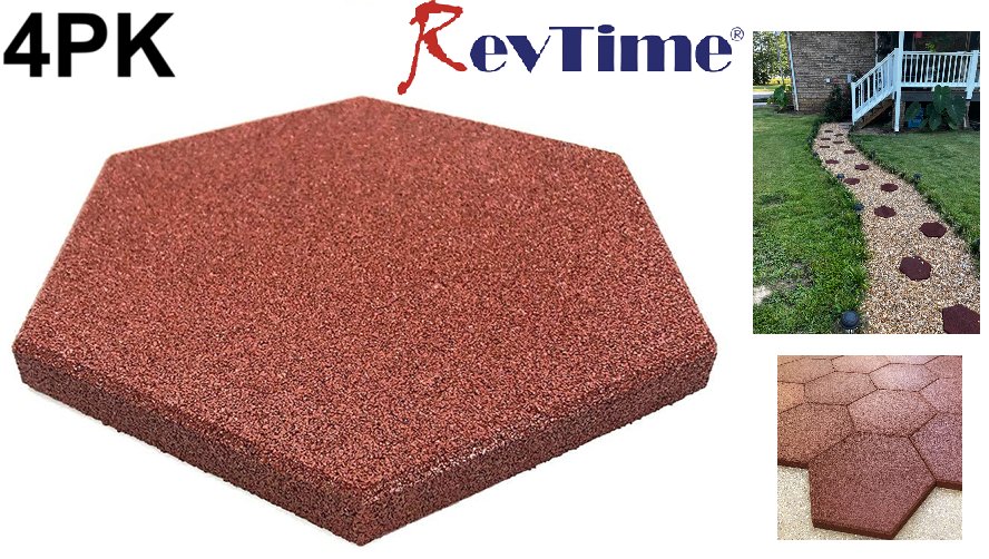 7PK Heavy Duty Hexagon Rubber Pavers/Steppingstones - 10.75" - Terra Cotta