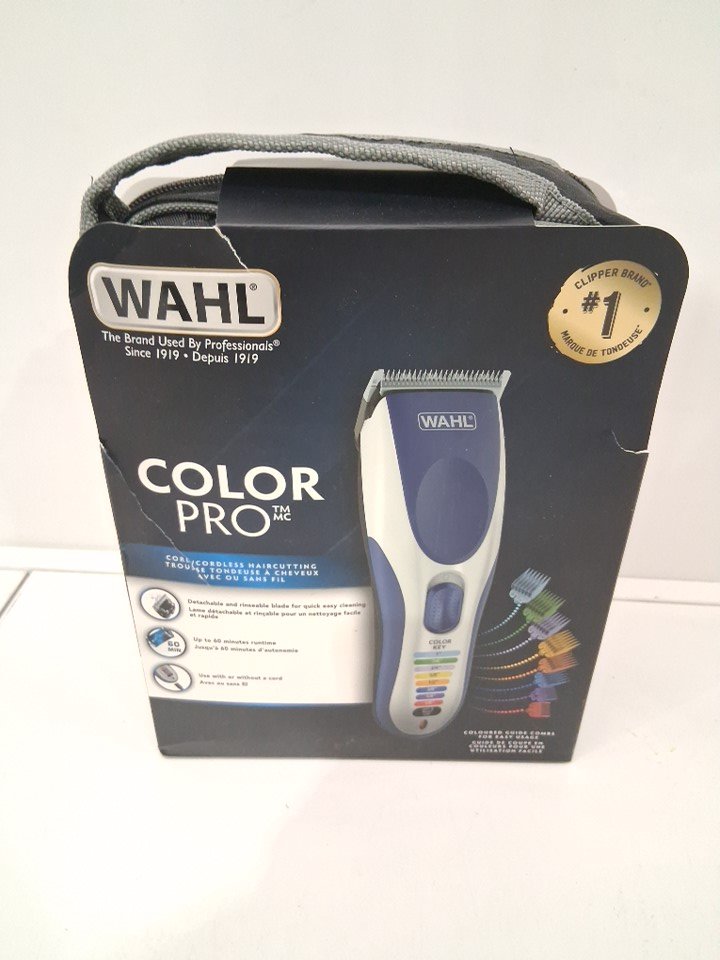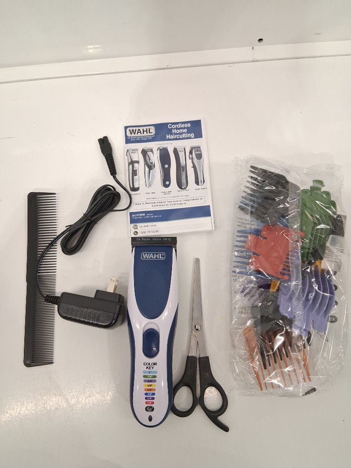 13pc WAHL CANADA colour pro haircutting kit with colour coded guide combs - blue/silver (model: 3100)