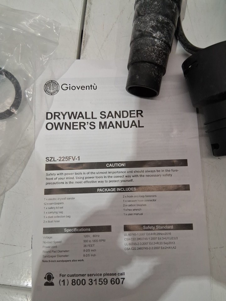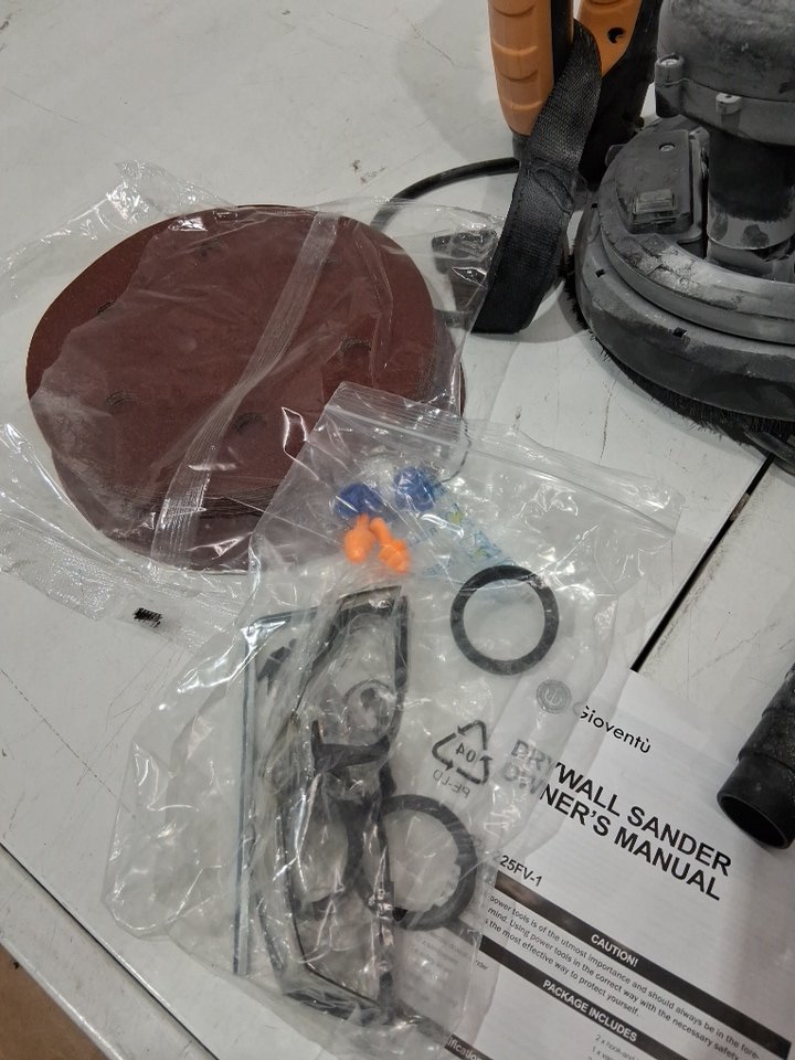 Missing one piece of sandpaper, with dust and some kind of powder covering it. Tested for power only.
