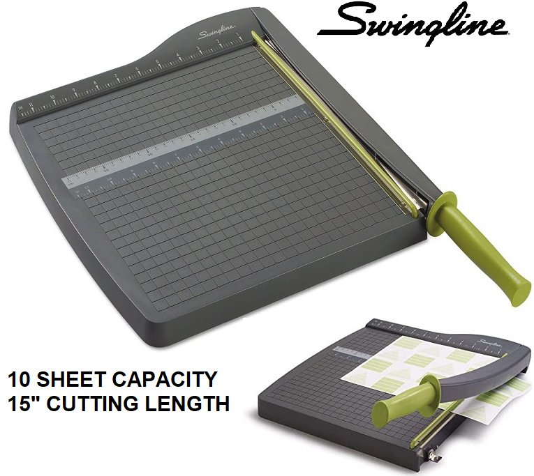 SWINGLINE CLASSICCUT LITE GUILLOTINE TRIMMER, 15" CUT LENGTH, 10 SHEET CAPACITY-GREY/GREEN-(MODEL:‎9312A)