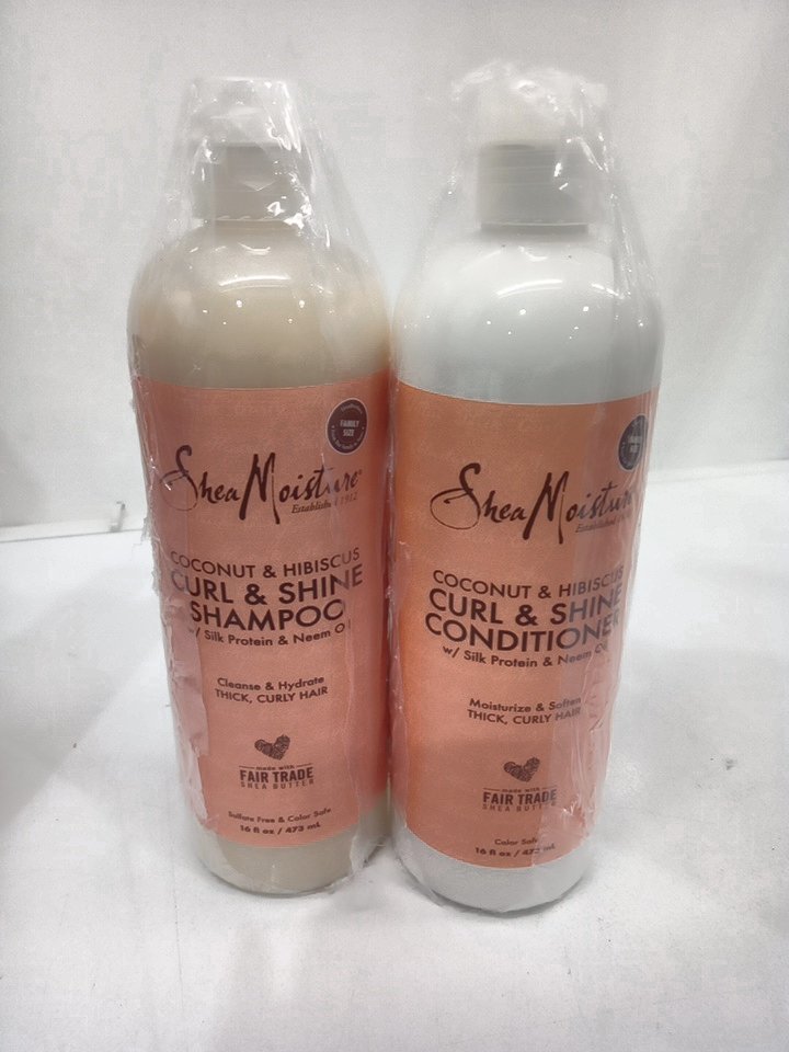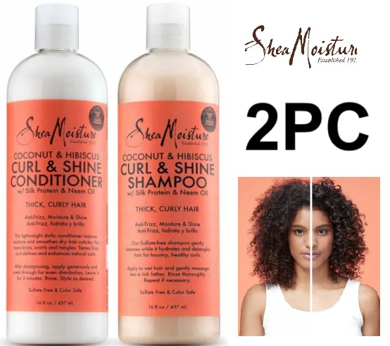 2PC shea moisture coconut & hibiscus curl & shine shampoo & conditioner set - 473ml/each