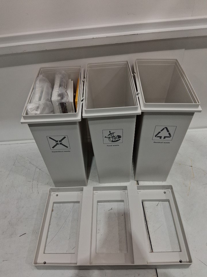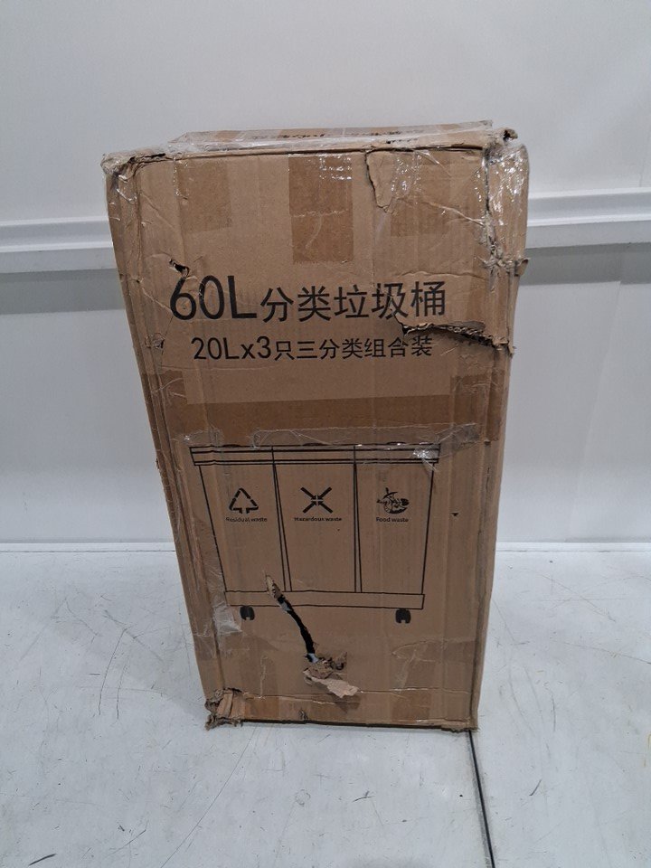 GOOFCXO 3-Compartment Sorting Trash, Recycling and Compost Bin - 60L (20L Each Bin) - White