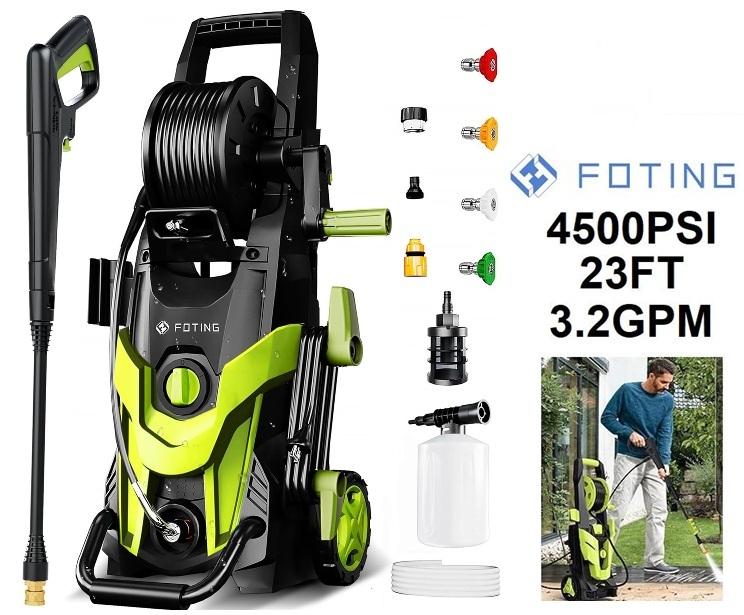 Foting Electric Pressure Washer - 4500PSI - 23FT cord - 3.2GPM - green/black (model: FT-KLC-T3-GN)
