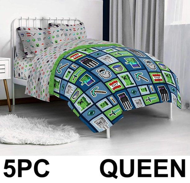5PC Jay Franco Minecraft Monster Hunters Bed Set - Includes Reversible Comforter And Sheet Set - Queen