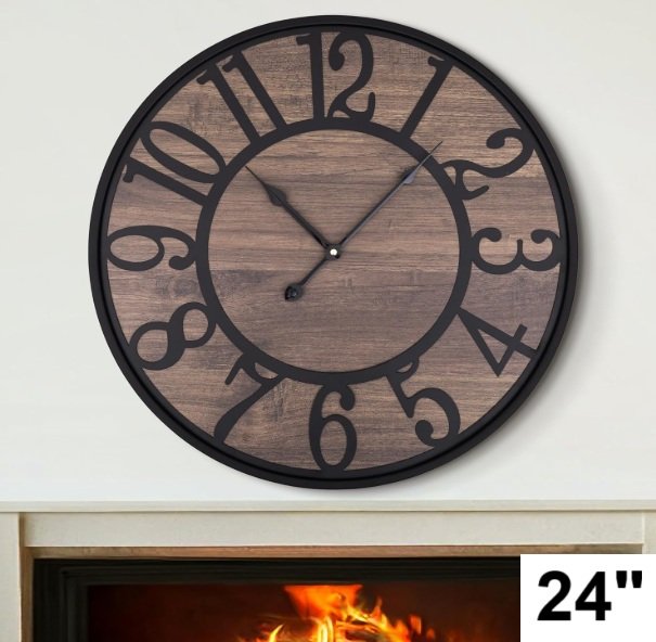 LEIKE non ticking Large Wall Clocks for Living Room- 24" - Black-arabic Number