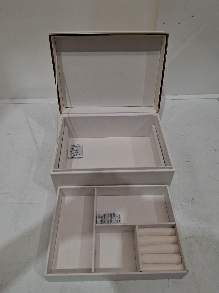 2-Tier Jewelry Organizer Box with Removable Tray & Floating Design - 9" x 6" - Off White/Gold