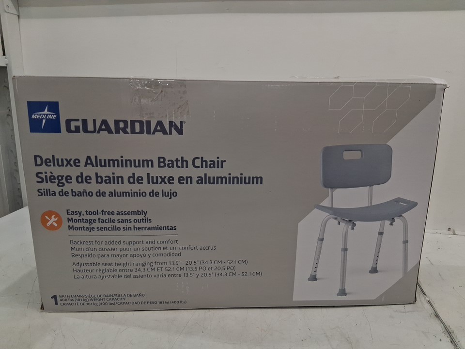 MEDLINE GUARDIAN DELUXE ALUMINUM BATH CHAIR - 400lb cap - Grey (MODEL: G2-101KRX1)