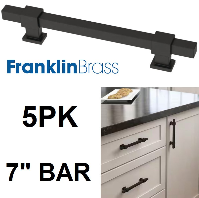 5pk franklin brass square bar adjusta-pull drawer pull - 7" bar (6.25" centre-to-centre hole) - black