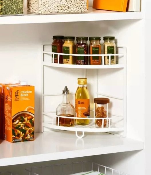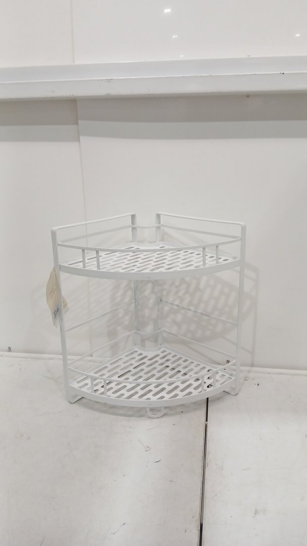 general purpose 2-tier punched metal corner shelf - 12" x 13" - white