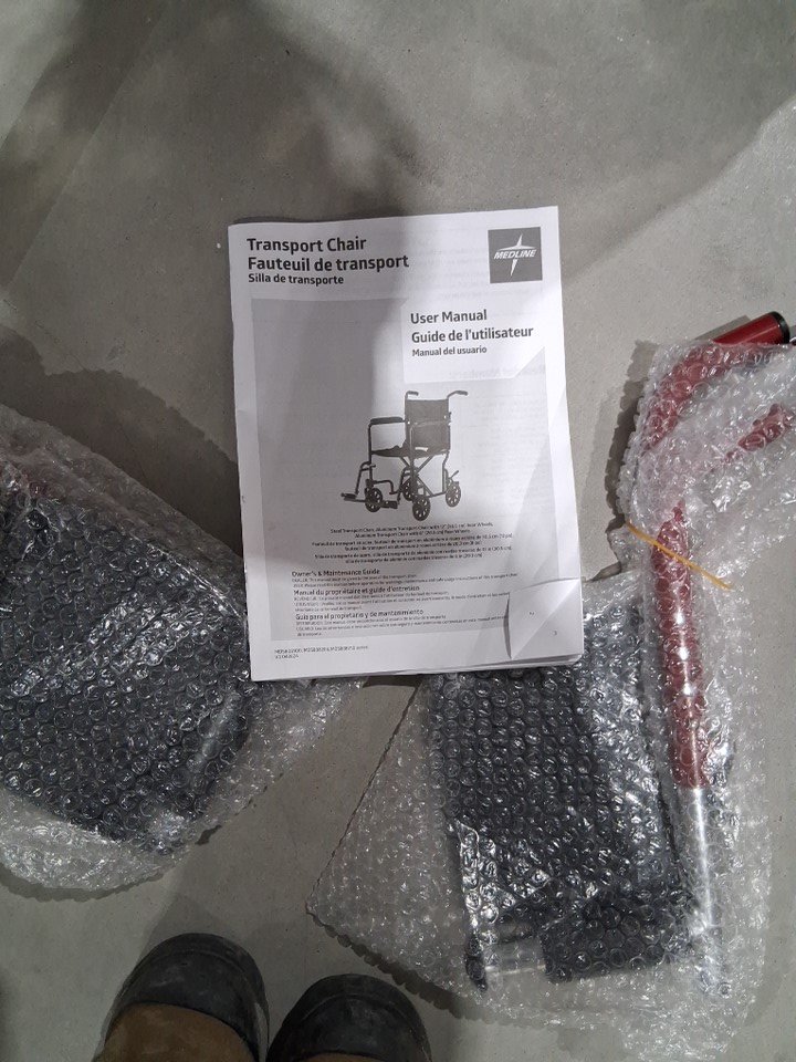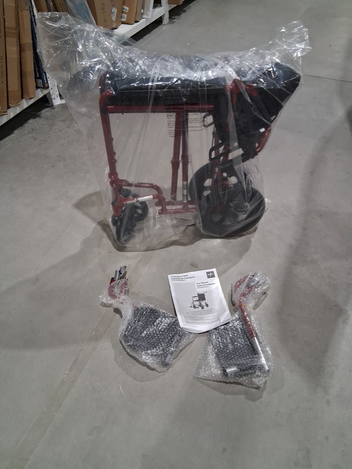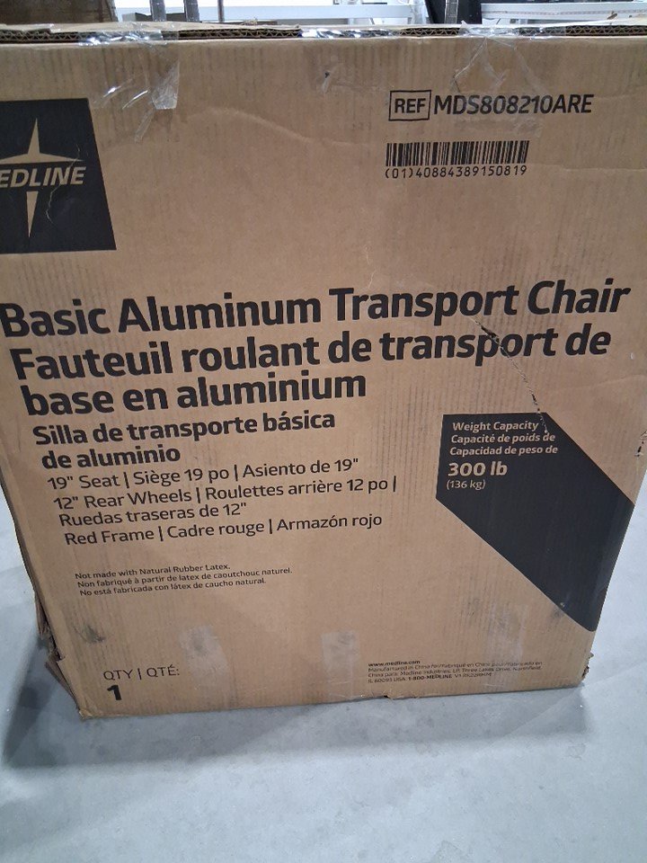 MEDLINE BASIC ALUMINUM TRANSPORT WHEELCHAIR - 19" - 12" REAR WHEELS WITH BRAKES - 300lbs capacity - RED (MODEL: MDS808210ARE)