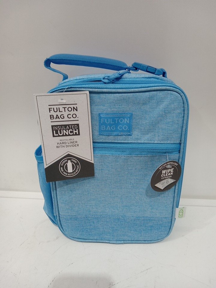 fulton bag co upright insulated lunch bag with hardliner and divider - harbor blue