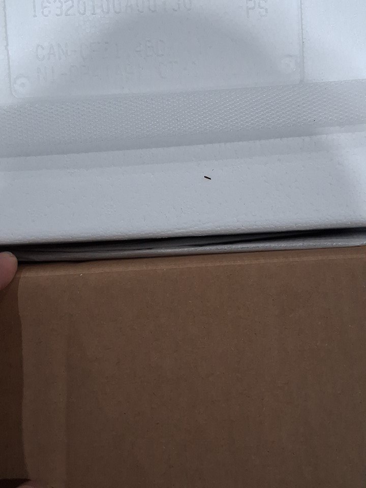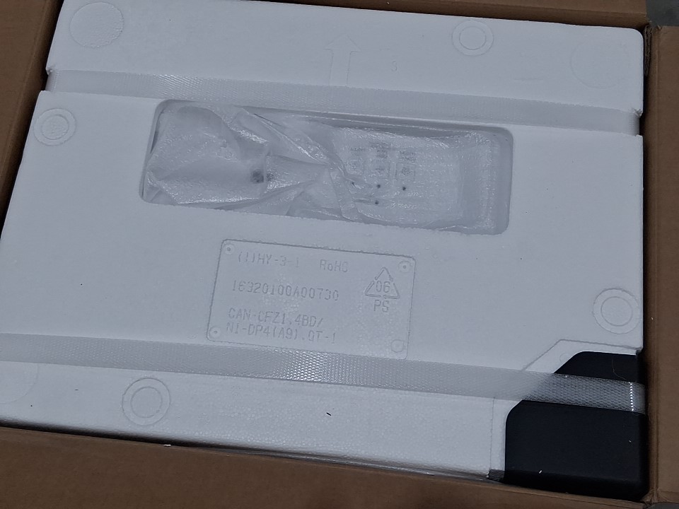 box was opened and the return label was in the top of the box, but this still has plastic straps around it and brand new, please see photos.