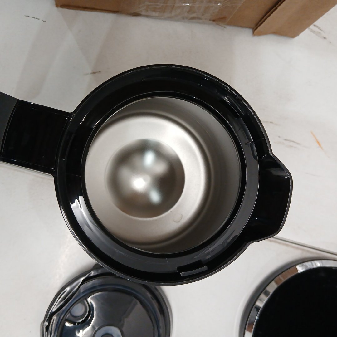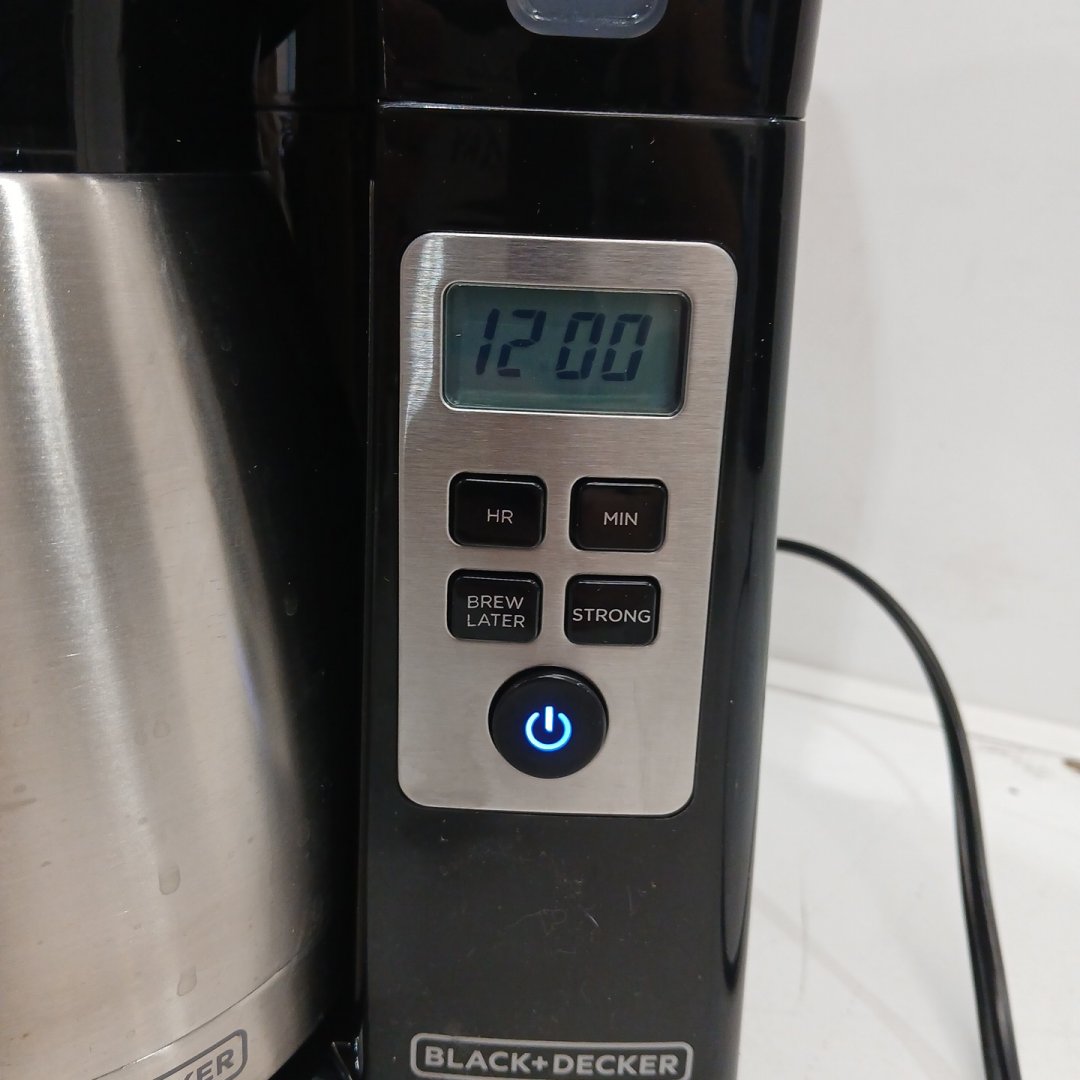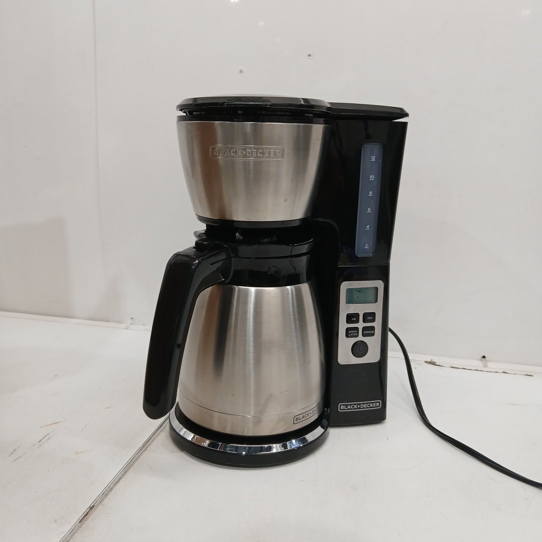 Item shows signs of previous light coffee use. Tested for power. Lid is a little finicky.