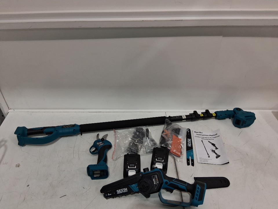 Tested all for power, working. Signs of light use, some rust on sheer blades, minor scratches on tools. See photos