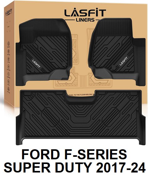 3PC LASFIT All Weather TPE Floor Liners - Fits Ford F250/F350/F450/F550 2017-2024 Super Duty Crew Cab - Black - (Model: ll-fd05)