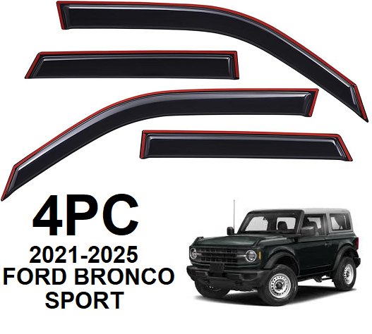 4PC Lightronic Extra Durable Clip-on in-Channel Auto Vent Window Visor - Fits 2021-2025 Ford Bronco Sport,- BLACK (MODEL: WV821017)