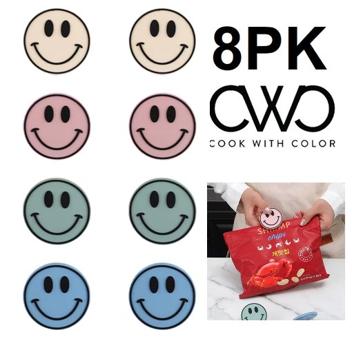 8PK COOK WITH COLOR DECORATIVE NOVELTY MAGNETIC BAG CLIPS - HAPPY FACES