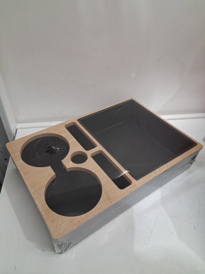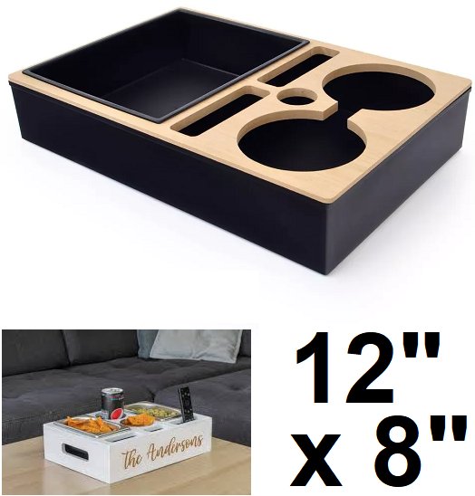 sofa buddy snack and drink tv picnic travel tray - 12" x 8" - black / bamboo