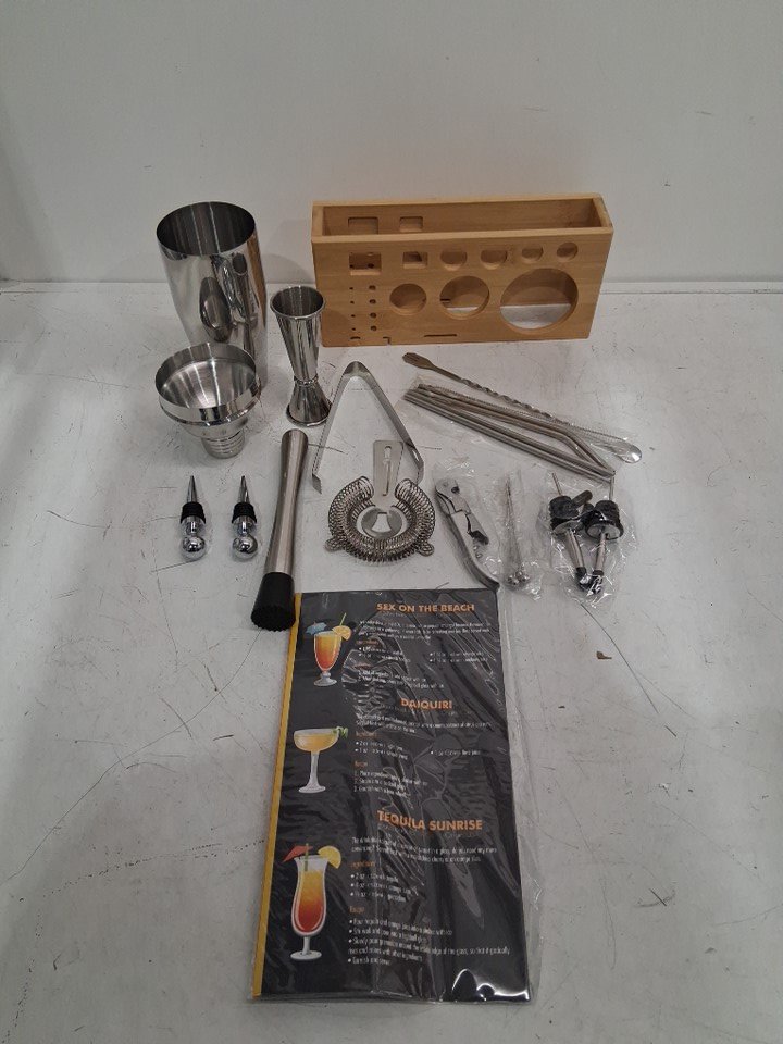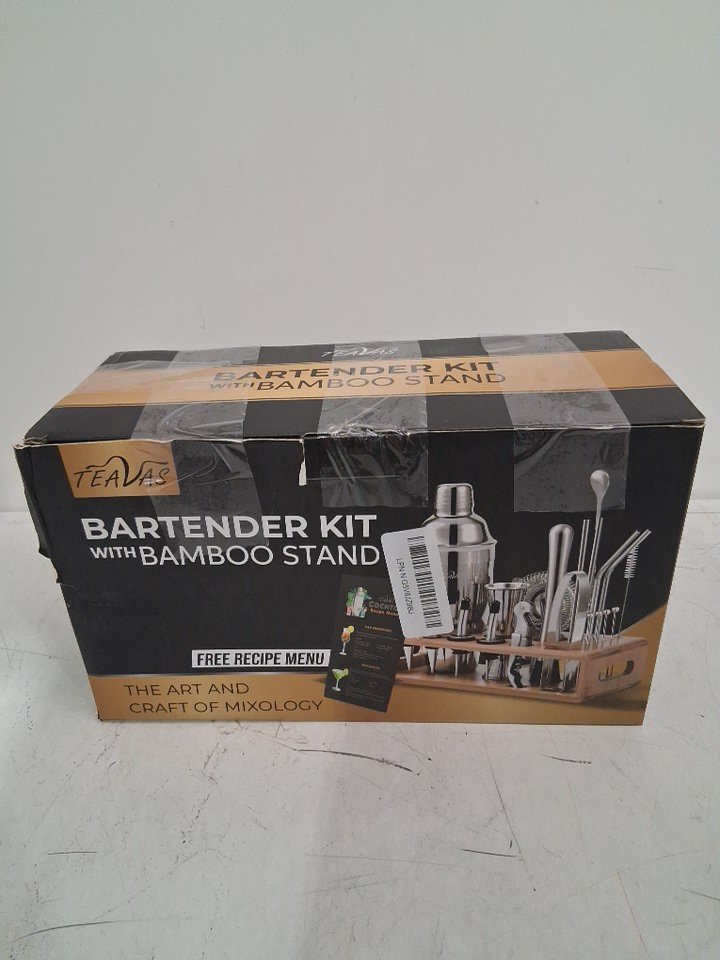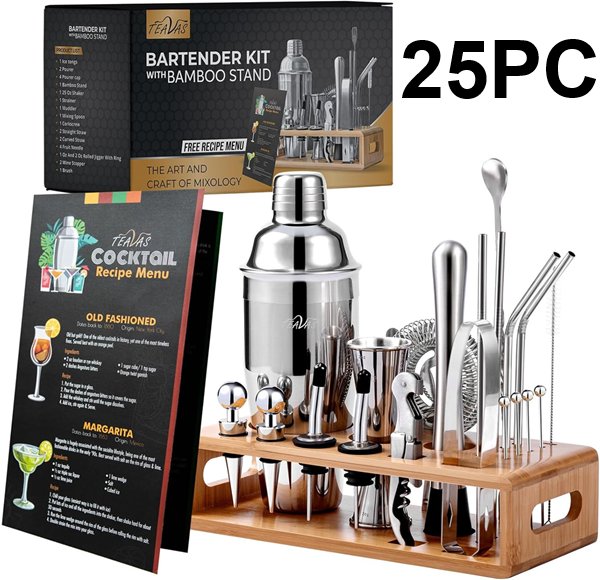25PC Teavas Mixology Stainless Steel Cocktail Making Set with Japanese Jigger & Bamboo Stand - Silver/Bamboo
