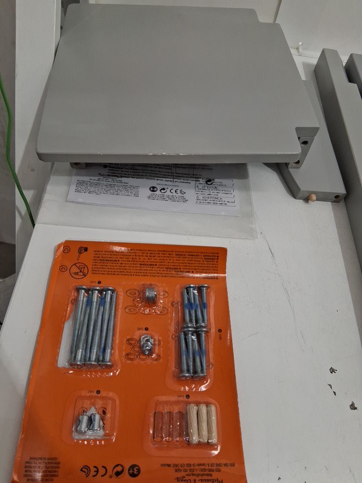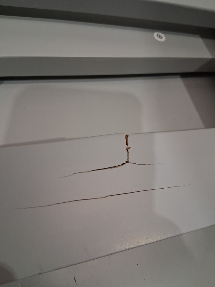 Nicks off of paint, crack in chair side piece, due to condition of hardware packaging it is clear the item was not previously assembled, part seem as though they can be fixed.