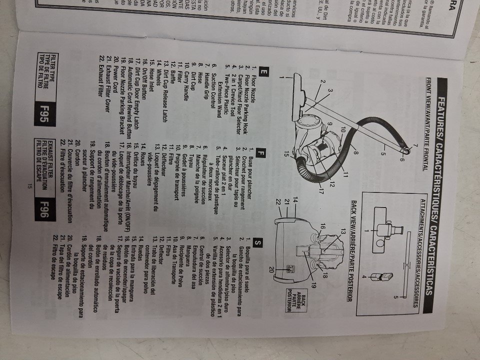 missing front nozzle, and pole attachments. Item was tested for power but there is no light indicator, see photos.