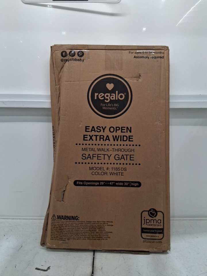REGALO EASY OPEN EXTRA WIDE 30" TALL PRESSURE MOUNT BABY GATE - 29" - 47" - WHITE (MODEL: 1185DS)