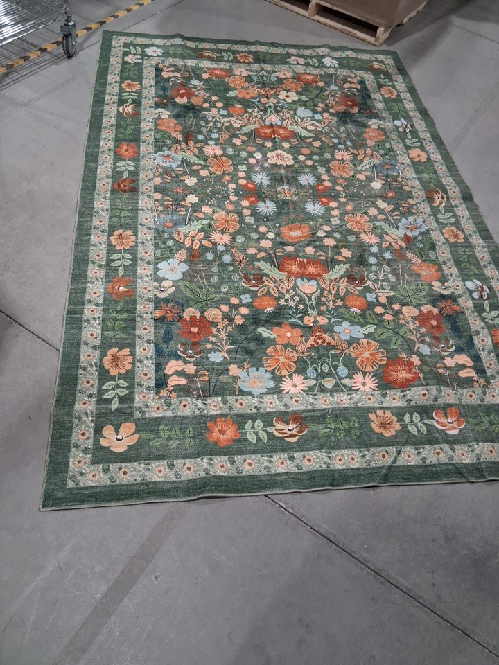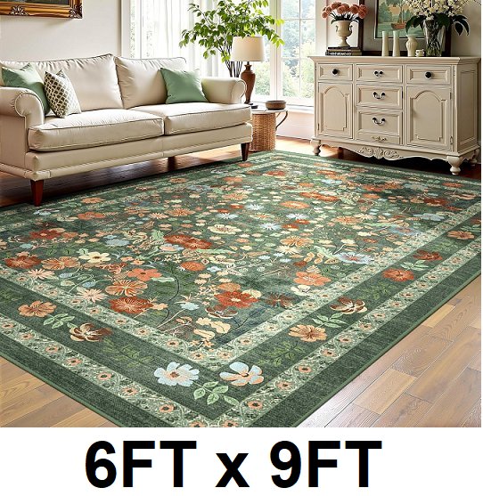 deerly vintage boho washable non-slip area rug for living room - 6ft x 9ft - green, floral
