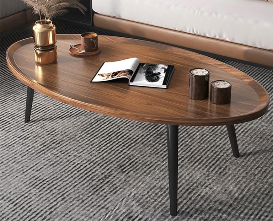 Mid-Century Modern OVAL Coffee Table - 47.2" X 23.6" X 15" - WALNUT/BLACK