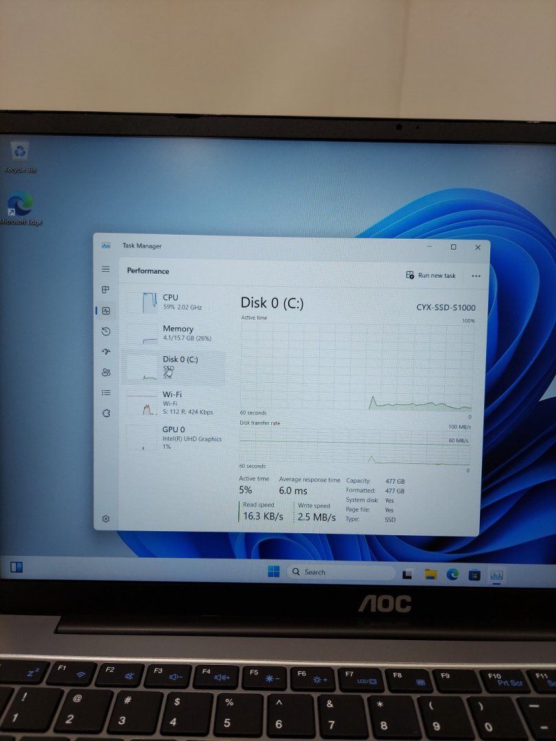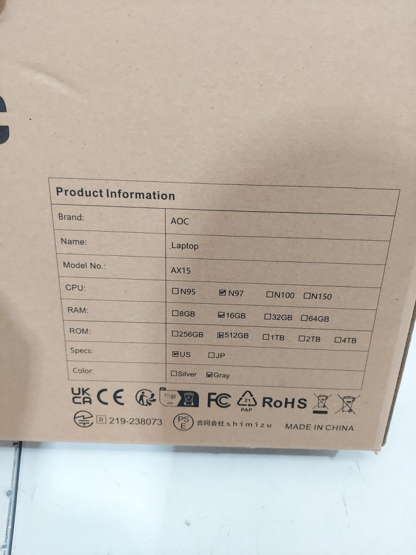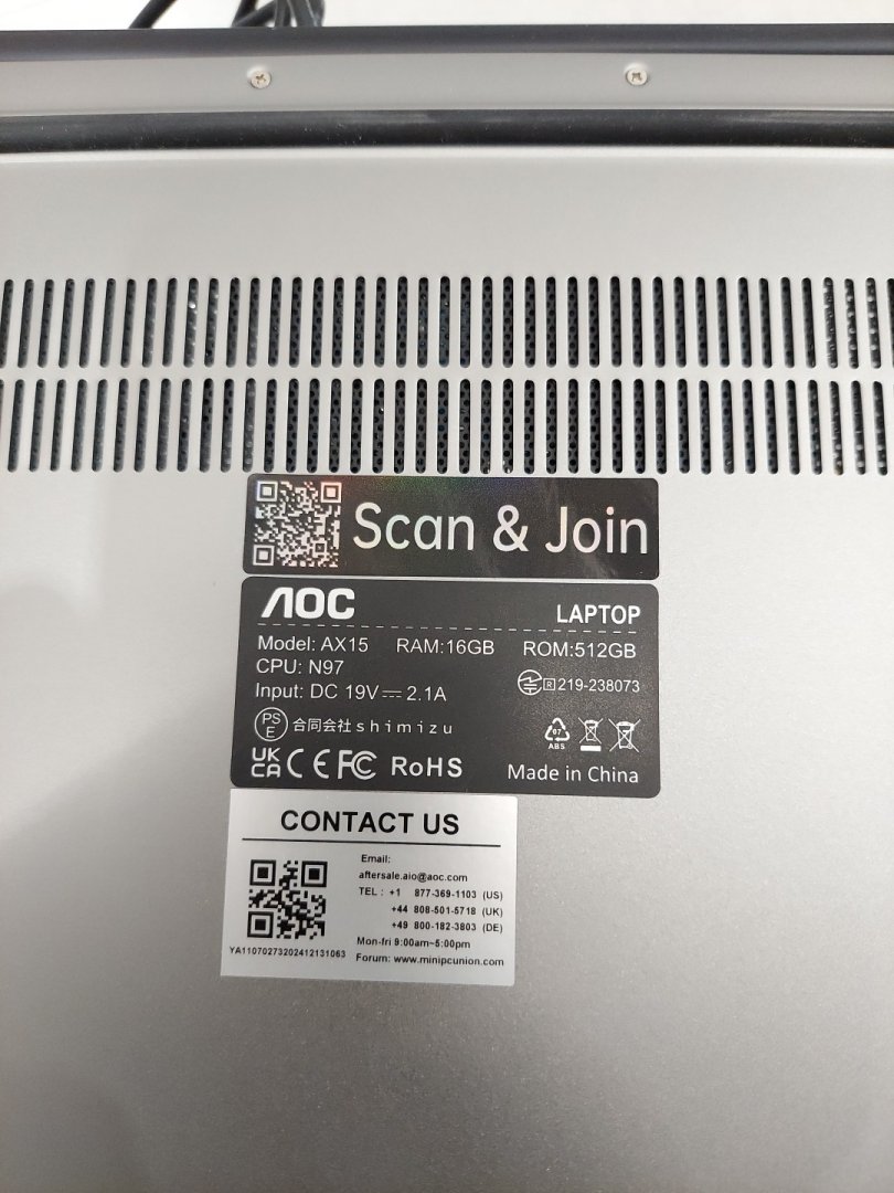 aoc premium laptop computer - intel n97 processor, 16gb ram, 512gb ssd, windows 11 pro - grey (model: AX15)