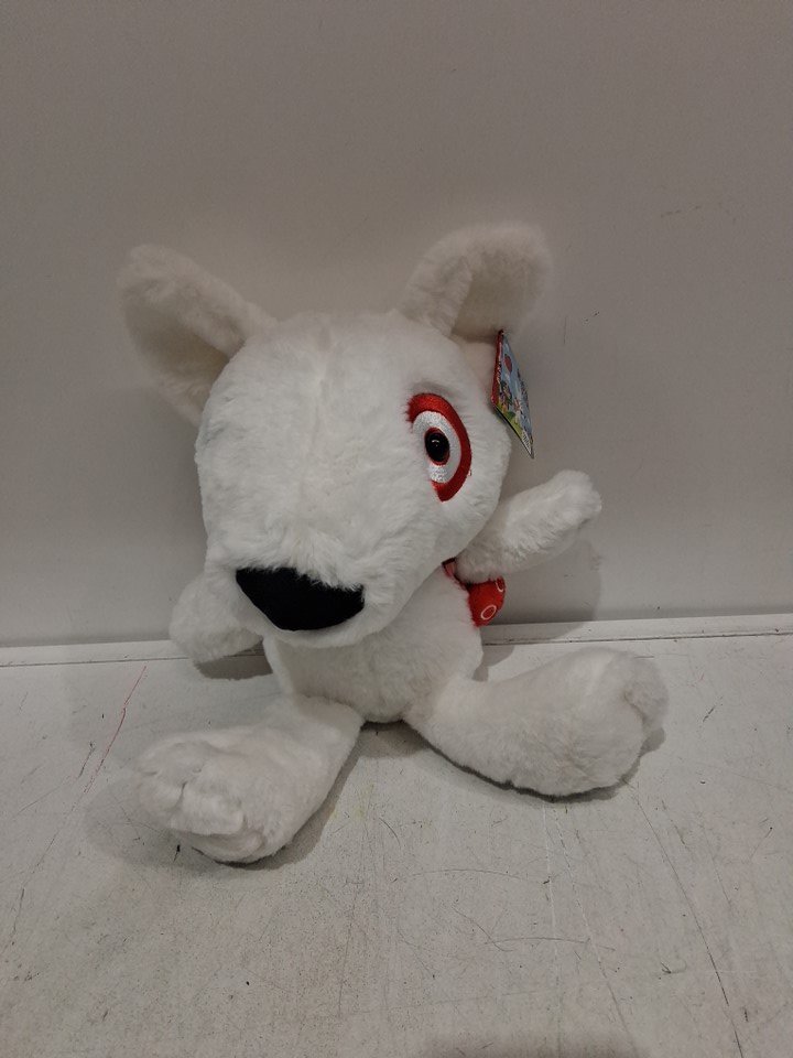 TARGET BULLSEYE PLUSHY TOY WITH BACKPACK - 10 " - WHITE /RED