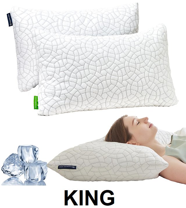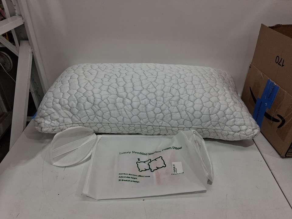LUXURY SHREDDED MEMORY FOAM 2 SIDED PILLOW - BAMBOO SIDE / COOLING SIDE - KING - WHITE