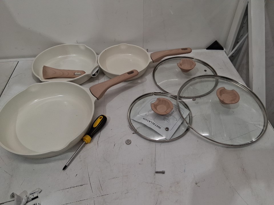 3pc Kordisen Ceramic Nonstick Frying Pan Skillet Set - 8"/9.5"/11" - white - (model: 0507)